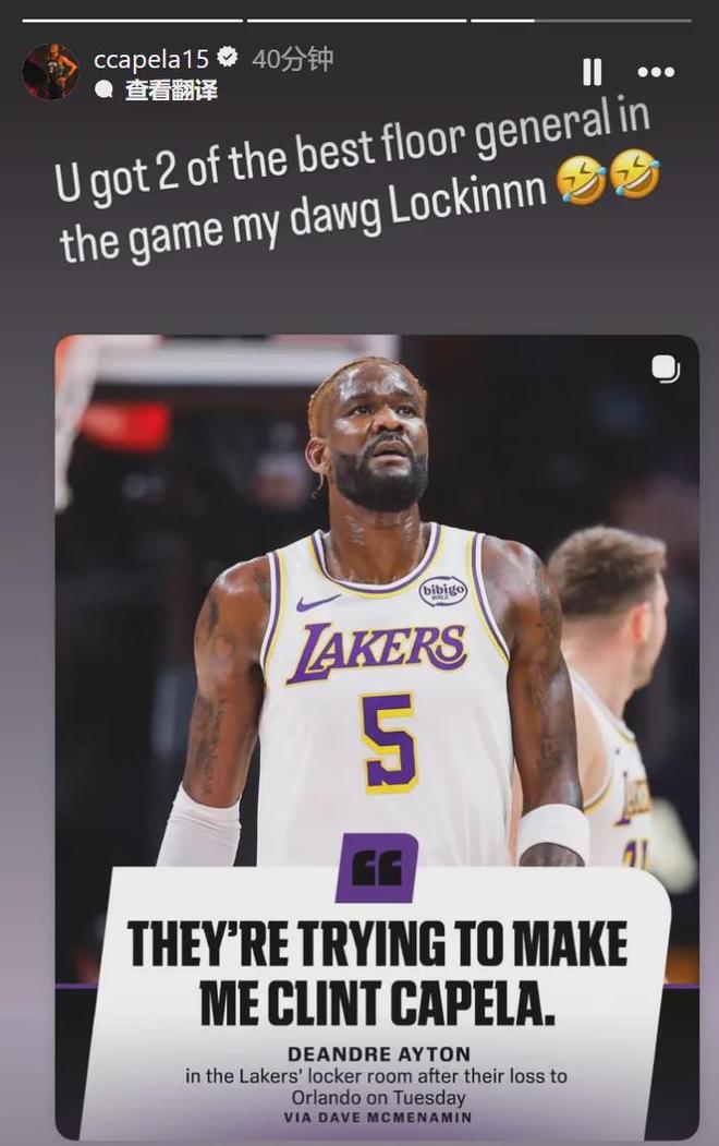 自全明星之后,湖人的战绩只有1胜3负。湖人上一场109-110惜败魔术,赛后更衣室出现问题。里夫斯对教练用人不满,本赛季第一次赛后拒绝采访。艾顿在更衣室发泄不满:“他们(湖人)想把我变成卡佩拉,但我可不是卡佩拉!”