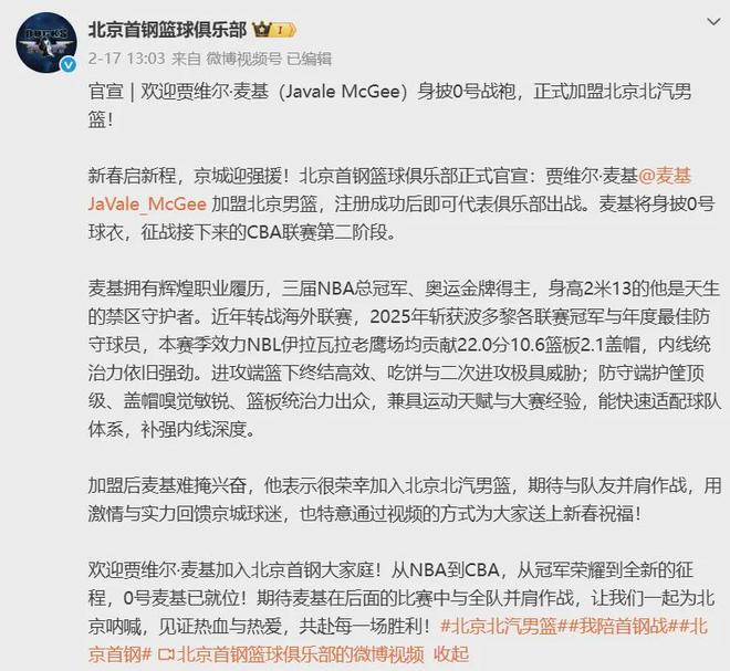 所以本来有多支CBA强队都有意将麦基收入麾下,最终如上所述北京队凭借城市属性与球队实力等方面脱颖而出,当然提供的薪资肯定也不差属于顶级范围。