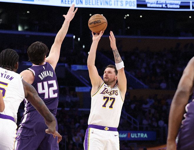 此后斯马特续上三分球,东契奇连续突破抛投,湖人重新拉开分差。中段东契奇带着海斯上分,肯纳德三分弹无虚发,东契奇甚至命中高难度漂移三分,国王依靠克利福德连续回应,东契奇继续单打,节末老詹干拔三分轰进,三节打完,湖人96-76领先国王。第四节俨然失去悬念,老詹内突外投连续上分,最终比分定格在128-104,湖人主场大胜国王。