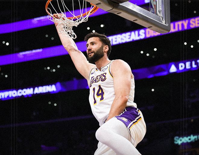 而湖人最大的收获来自肯纳德,自从加盟湖人后,肯纳德场均贡献10.1分,三项命中率高达65%+46%+91%,提升湖人替补得分下限。但湖人最大问题反而在内线,艾顿的产量和护框效率实在太低了,季后赛很难匹配高端局的表现。回顾一下比赛,背靠背老詹继续出战,开场德罗赞招牌中投,东契奇连续喂饼里夫斯和艾顿,老詹也助攻艾顿对抗上篮,此后老詹中投+空接暴扣打停国王。中段威少和克利福德连续得分,东契奇单打+助攻里夫斯扔三分球,海斯暴扣+里夫斯强攻,东契奇和八村塁下三分雨,湖人已经领先20分!
