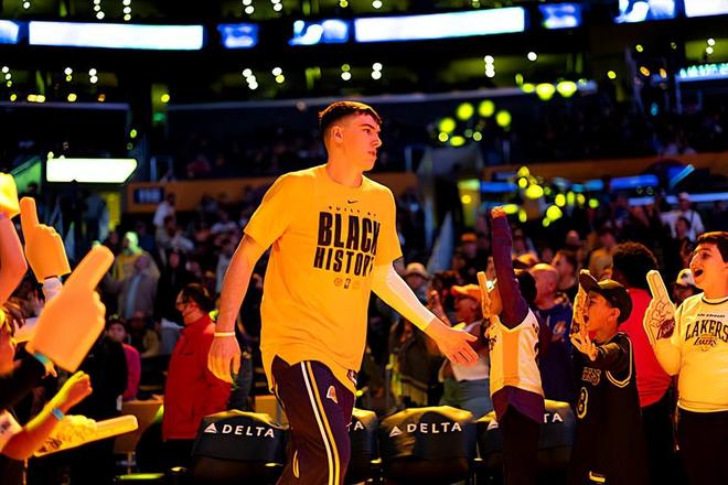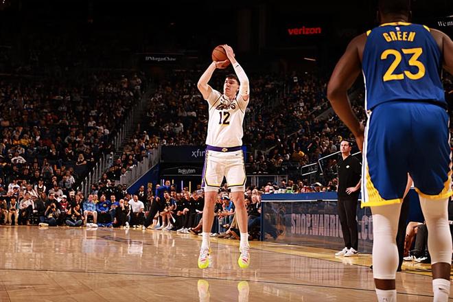 本场比赛中,湖人的替补侧翼新星杰克-拉拉维亚(Jake LaRavia)的表现也算是有了一定程度的提升。拉拉维亚全场出场14分27秒,投篮4中2,三分线外2中1,得到了5分2篮板2助攻1抢断的数据,正负值为+10。拉拉维亚的出场时间并不多,也没有得到什么投篮机会,但是他还是把握住了机会命中了1记三分,他还展现出了一定的传导球能力,他在进攻端还是起到了一定的作用的。不仅如此拉拉维亚在防守端也算是相当努力的,他也能够通过自己超高的积极性给对手制造一些麻烦。至少在本场比赛中,拉拉维亚算是展现出了一名3D类型侧翼球员应该具备的素养,给球队的胜利做出了自己的支持。