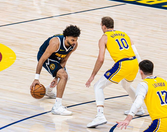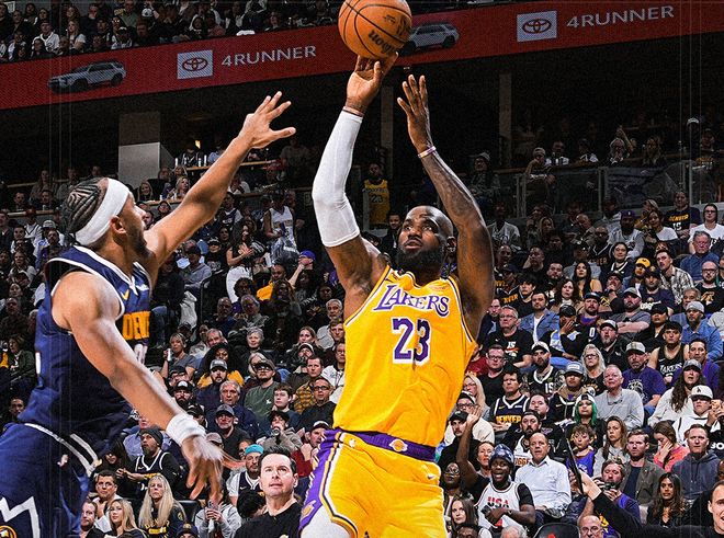 中段老詹暴扣,总进球数追平贾巴尔,东契奇单打,配合八村塁轰三分球,掘金这边布劳恩和小哈达威连续外线发炮。节末瓦兰继续造杀伤,老詹中投超越贾巴尔,成为NBA历史进球王!第一节湖人22-32落后掘金。进入第二节,肯纳德率先命中三分,穆雷和纳吉继续下三分雨,掘金最多领先15分。危急时刻老詹喂饼海斯,随后连续强攻+快攻,东契奇行进间抛投,湖人一波流追到只差3分!中段布朗和布劳恩继续下三分雨,好在八村塁和东契奇外线能给出回应,节末肯纳德和斯特劳瑟对轰三分,半场湖人54-64落后掘金。