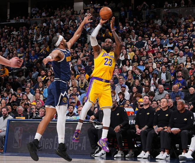 末节,末节开场,詹姆斯2分3助攻,帮助湖人再度缩小到5分。海斯暴扣得手后已经缩小到3分,随后掘金又拉开,詹姆斯关键的上篮但落地左手撑了一下疑似受伤,随后被换下。