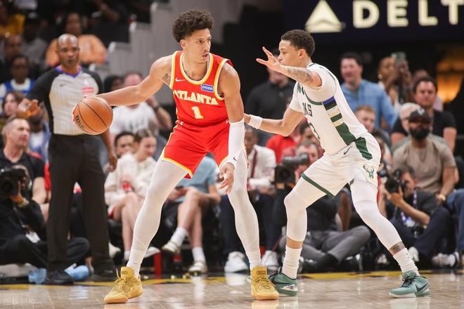 老鹰轻取雄鹿,杰伦-约翰逊又砍三双。上半场他就砍下13分6篮板6助攻。全场比赛,杰伦-约翰逊出战35分钟,投篮20中10,三分5中2,罚球2中1,砍下23分10篮板12助攻的三双。