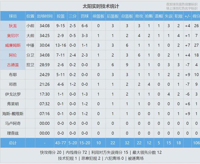 目前太阳28胜19负,仍然排名西部第六,落后第五的湖人1个胜场。杰伦-格林腿筋伤势复发,本赛季至今一共只打了4场比赛。布克右脚踝受伤,至少还得缺席1周。太阳下一场将对阵东部榜首的活塞,接下来还要打骑士和快船。