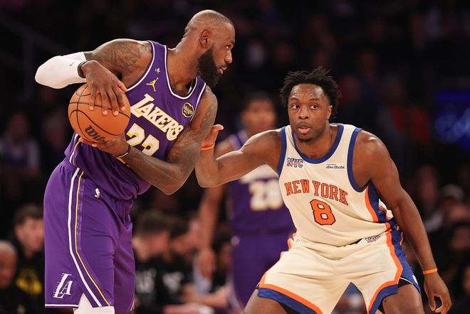 湖人客场挑战尼克斯,湖人少了里夫斯,尼克斯少了麦克布莱德,湖人首节取得6分领先,第二节尼克斯追回2分,半场战罢湖人领先4分,第三节尼克斯单节赢了12分反超8分,第四节尼克斯稳住优势,最终尼克斯112-100击败湖人。阿努诺比15中9(三分8中4)得到25分8板3助3断、哈特11中8(三分4中3)得到20分4板2助,沙梅特13中8(三分10中6)得到23分3板1助,湖人方面东契奇23中10(三分14中5)得到30分15板8助,詹姆斯15中9(三分6中2)得到22分5板6助。