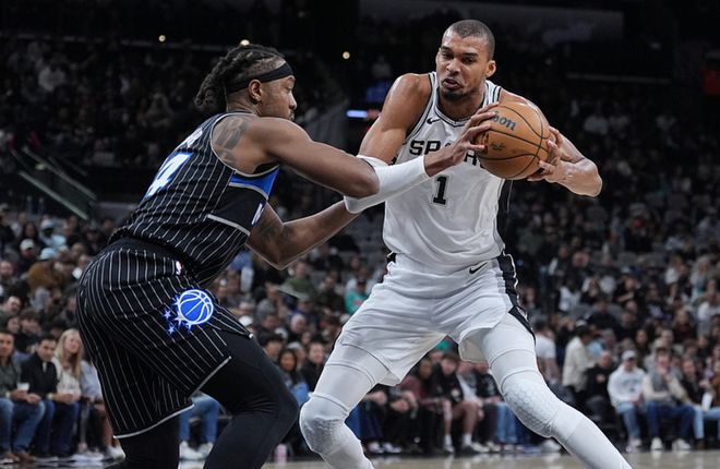马刺主场迎战魔术,马刺少了卡斯尔,魔术少了小瓦格纳,首节比赛马刺赢了16分,第二节魔术赢了17分反超1分,下半场比赛马刺重新占据上风,最终马刺112-103击败魔术。文班13中7得到25分8板2助4断5帽,福克斯14中7得到14分3板10助,哈珀12中6得到15分6板5助,魔术方面贝恩17中10得到25分4板4助,班凯罗12中6得到19分10板4助。