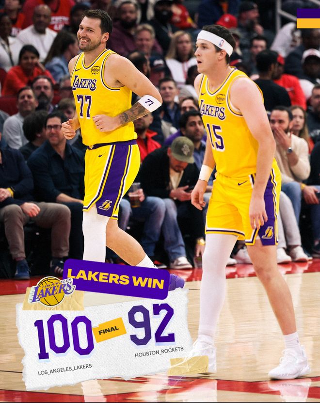 湖人100-92击败火箭赢下关键的卡位战,这场比赛两队鏖战至最后一刻,火箭队在最后的6分钟里只拿到4分全线哑火,而湖人凭借着艾顿、斯玛特、东契奇、詹姆斯四人的轮番得分拿下胜利。