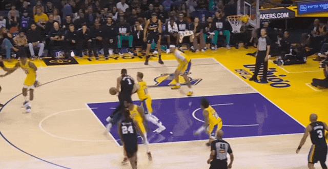 湖人进攻效率联盟第九。五个人场均得分两位数,四个人场均2助攻。