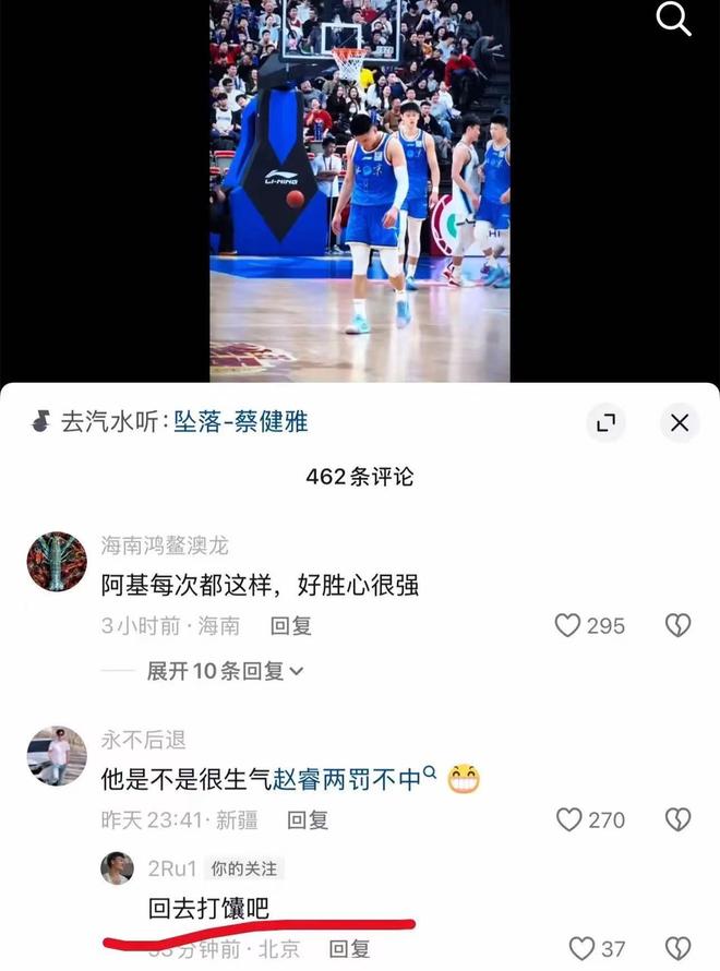 有不少网友还在赵睿的社交平台上留言,面对属地为IP地址为新疆的球迷留言称:北京争冠无望,而赵睿直接回复:“新疆边上待一待,自己人民都没有主观思想,都是别人带着跑。”另外一名新疆球迷提到他罚球不中,赵睿更是回怼:“回去打馕去”。