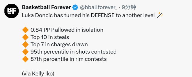 如今的东契奇,再也不会在防守端偷懒划水。教练信任他,让他去对位低使用率前锋和定点射手,允许他在传球路线上冒险。