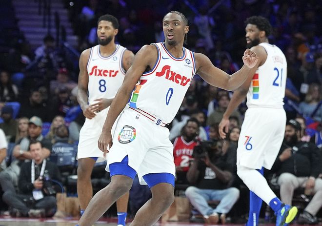 但恩比德缺阵时,球队战绩只有16胜19负,这已经算提高很多了。因为在此前两个赛季,恩比德缺阵时,球队战绩只有32胜74负,妥妥摆烂大队水平!本赛季之所以可以提高很多,因为有埃奇库姆+马克西+格莱姆斯三位年轻人保底,但是,自从进入3月份以后,球队接连不断的伤病,已经彻底压垮这支球队!马克西遭遇右手小拇指扭伤,至少要到4月份回归;乔治被禁赛25场,还有4场才能回归;锋线大将乌布雷肘部伤势,预计也要3月底才能回归。打掘金一战,甚至让“解说员”洛瑞上场打了18分钟,累得够呛!