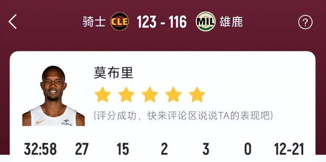 由于雄鹿缺少字母哥坐镇篮下,莫布里完全掌控篮板拼抢与护框大权,既能持球强攻取分,又能拼下前场板完成二次终结,3次封盖更是直接掐灭雄鹿多次内线强攻企图,骑士内线得分以56比34大幅领先,莫布里功不可没。