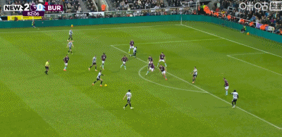 第90+4分钟,拉姆齐送点,弗莱明点射破门扳回一城,伯恩利1-2纽卡