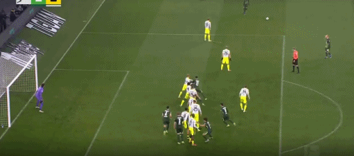 第90分钟,阿诺德远射发生折射,球蹭到门框出了底线